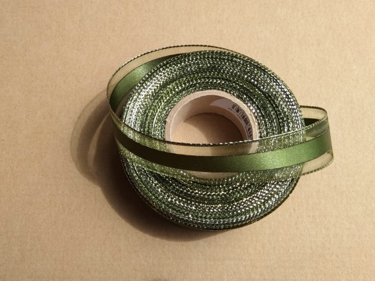 Stuha atlasová s monofilem 25 mm - zelená tmavá se stříbrem 030322(2)