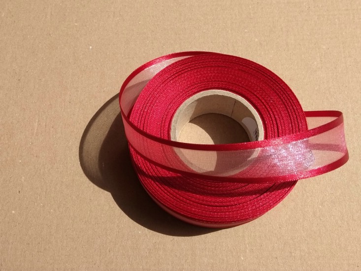 Stuha monofil. s atlasem a vlascem 25 mm - červená tmavá 030656